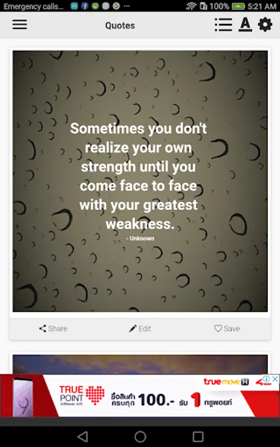 - You can switch between list view (which you can see multiple quotes in one screen) and single quote view (which will show only 1 quote but will have larger font and clearer space). So we leave it to you to choose the one you like the most!
