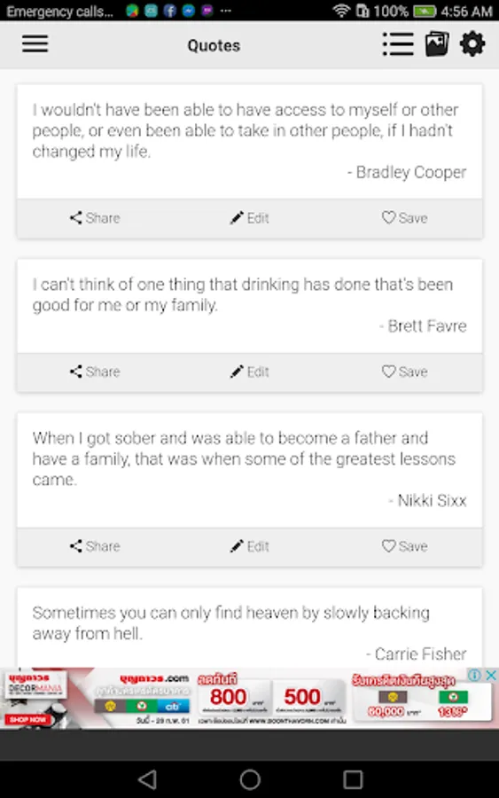 This is an App that stores many great quotes about Sobriety & Addiction Recovery. I will continue adding new quotes timely. There are many Sobriety Quotes that you can learn from and share with your friends.