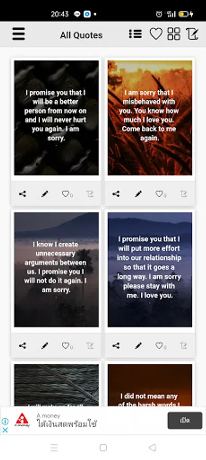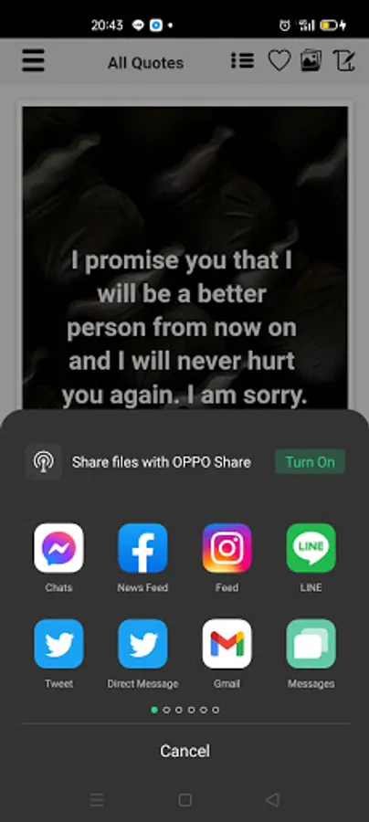 - You can switch between 2 views (image quote view and text quote view) easily.
