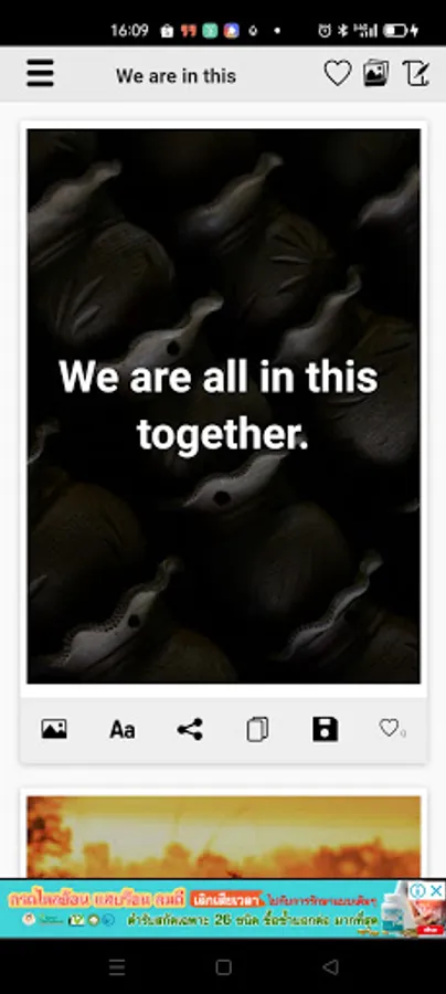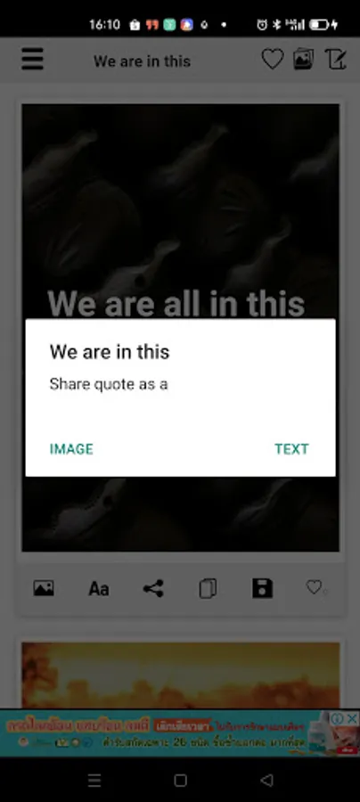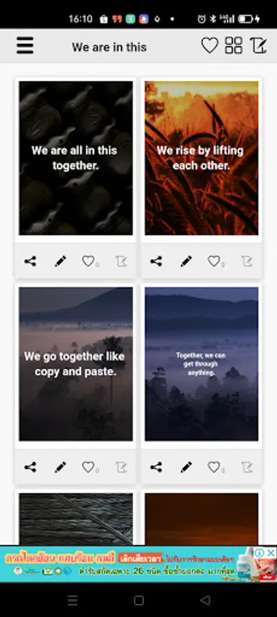- You can switch between 4 views (image quote view, full image quotes view, grid view and text quote view) easily.
