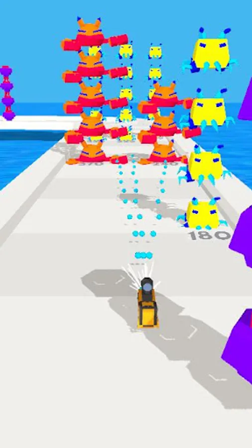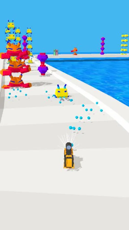Destroy enemies and obstacles to reach the end of the level.