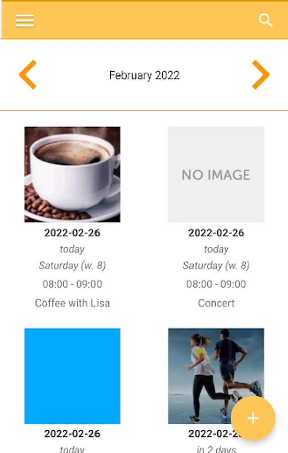 + take picture with your camera or choose one from gallery, when associating an event with a picture