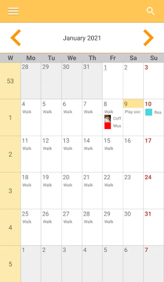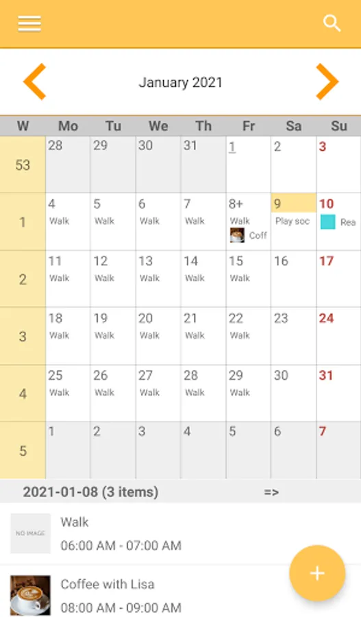 + synchronize with external calendars (Samsung calendar, Google calendar) when installing app