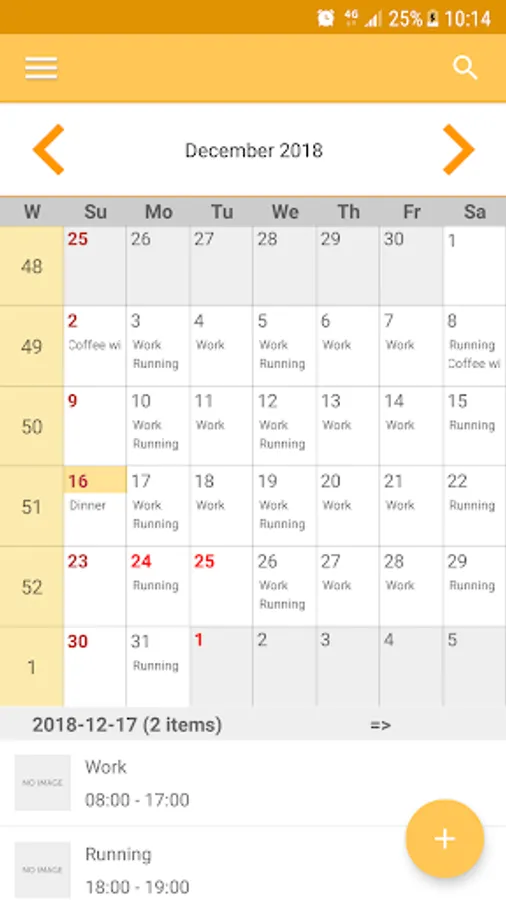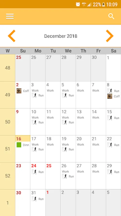+ synchronize with external calendars (Samsung calendar, Google calendar) when installing app