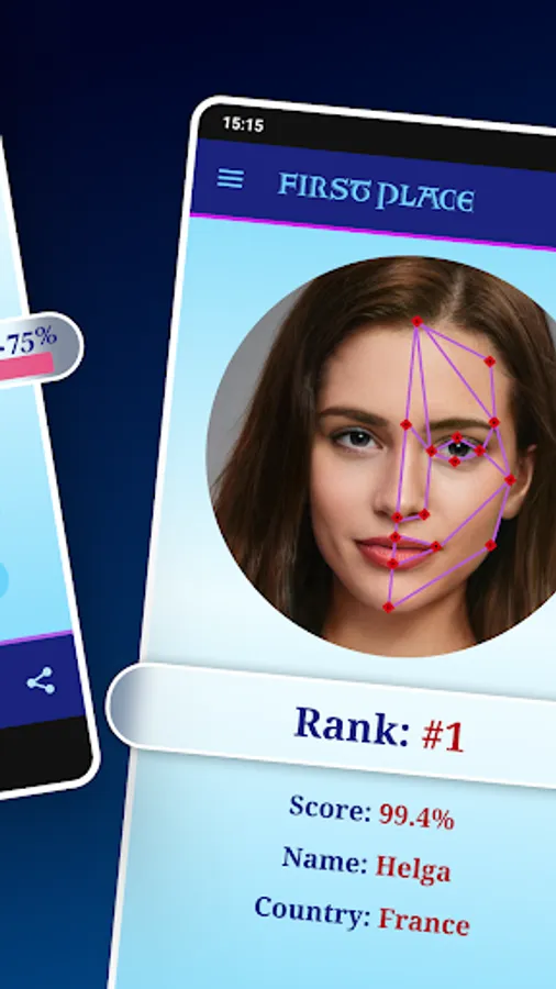 Suppose your beauty ratio is rated among the top 5. In that case, you will have the opportunity to submit your picture to the database, including your name and country, so that other people can see your face beauty, and ranking - pretty scale (this operation is optional).