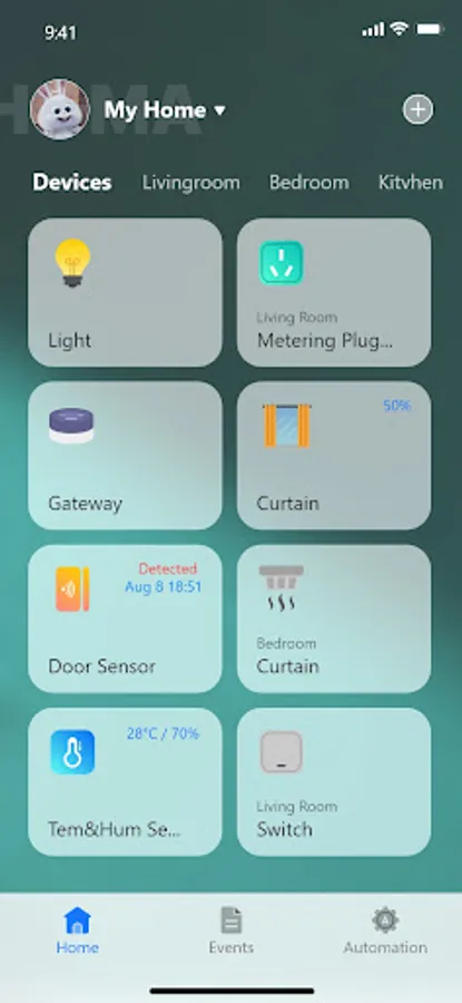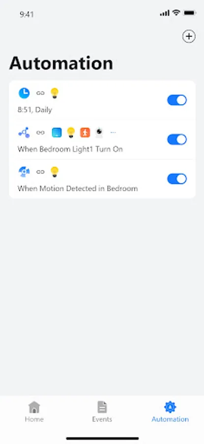 • Create a new automation to simplify your life. For example: set the lights to turn on automatically when the doors and windows are opened.