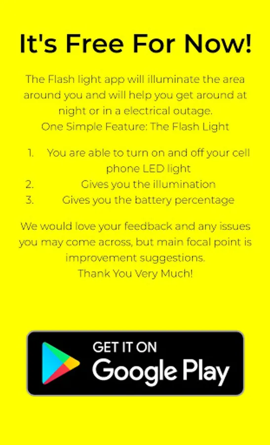 The Flash light app will illuminate the area around you and will help you get around at night or in a electrical outage.