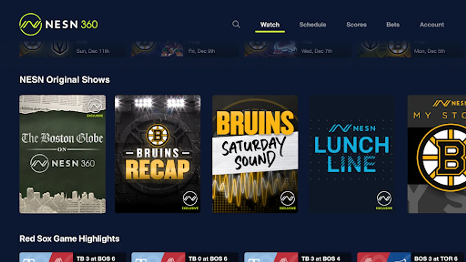 · Live Red Sox and Bruins games that air on NESN & NESN+