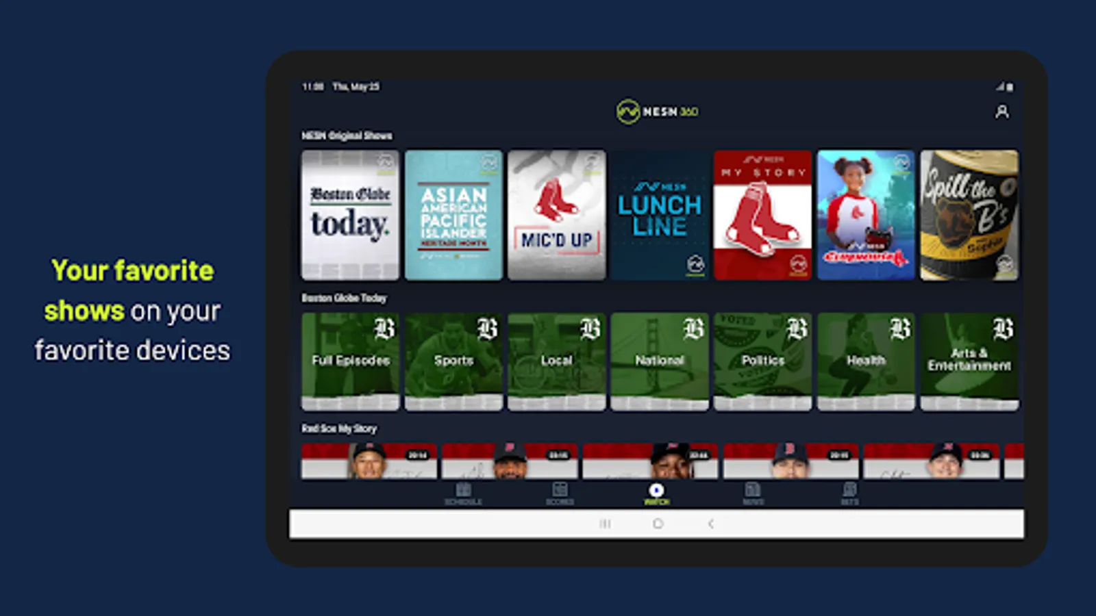 · 24/7 access to the live NESN/NESN+ feed and VOD library across devices