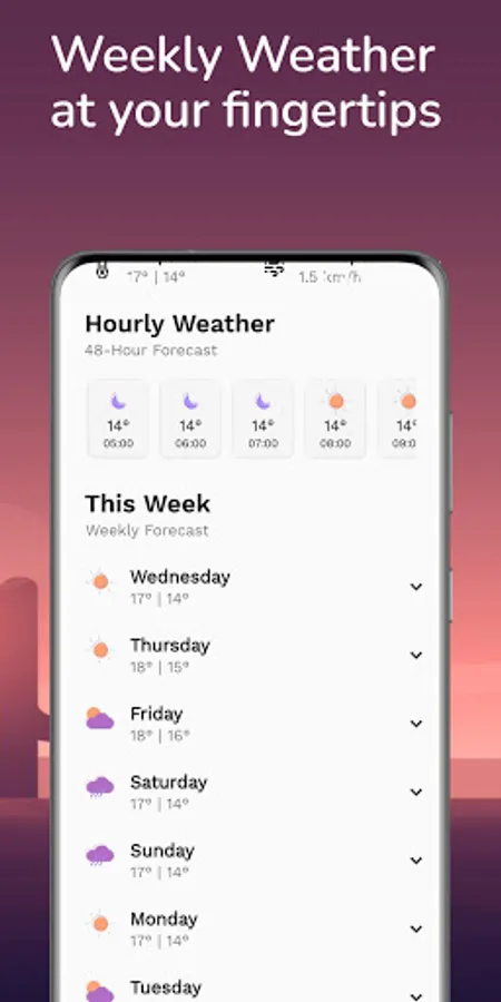 ● Stay on top of the weather using the app's Weekly Weather Forecast