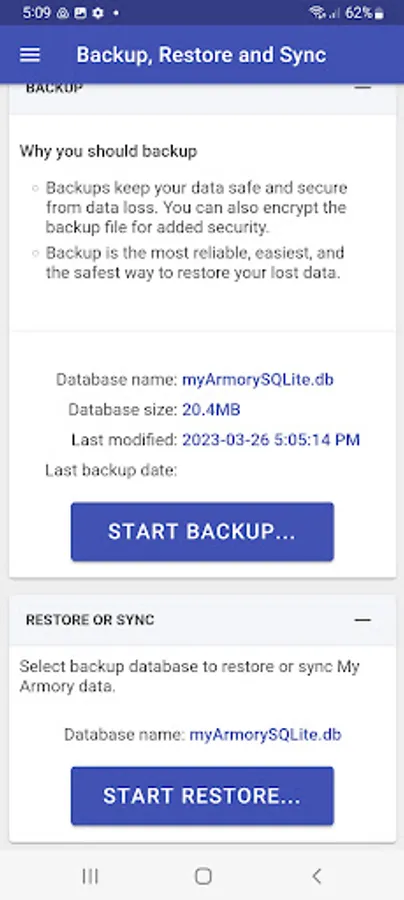 Your firearm data is always secure and backed up. You can easily backup and restore your data to and from the cloud drive of your choice, ensuring that you never lose any important information. Plus, with our sync feature, you can effortlessly keep your data up to date across multiple devices using a backup file.