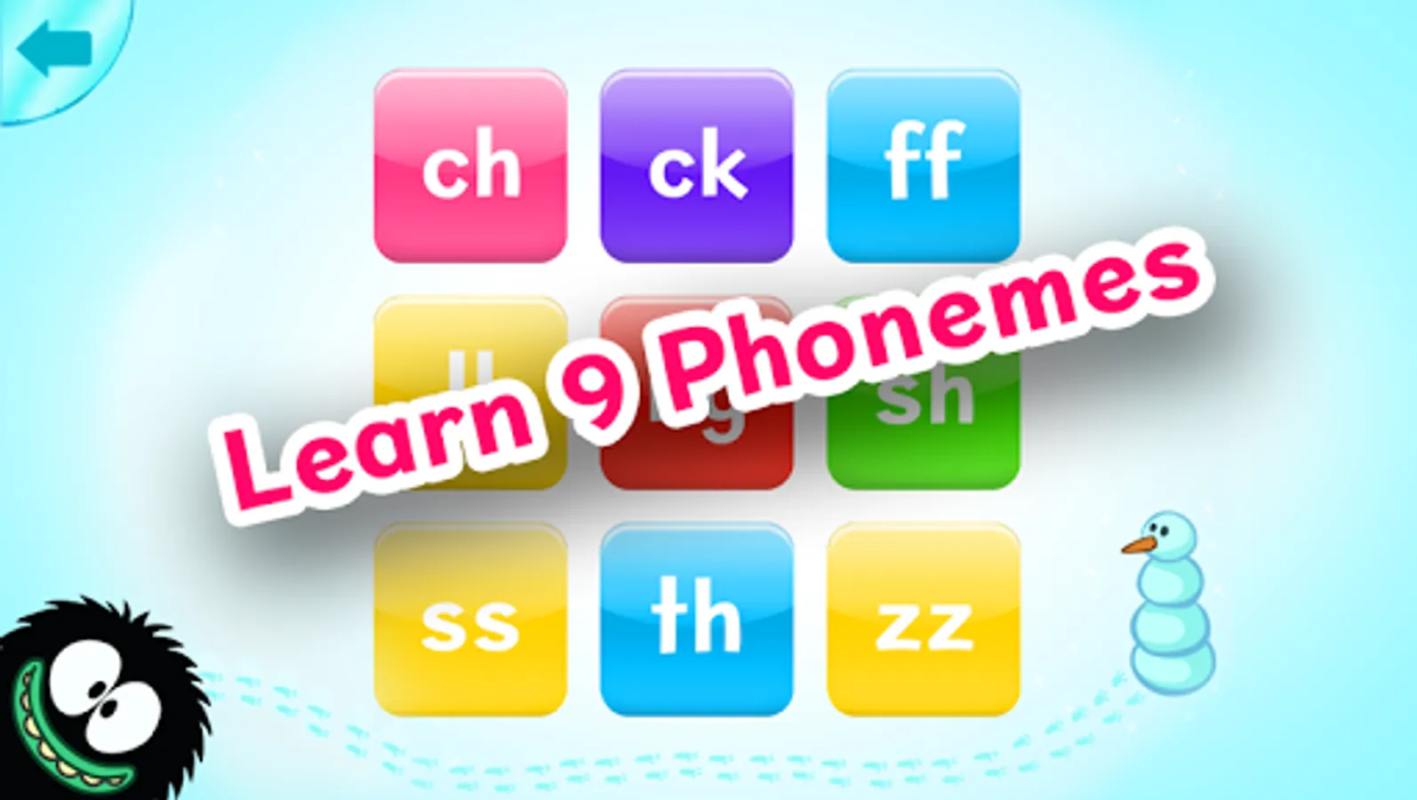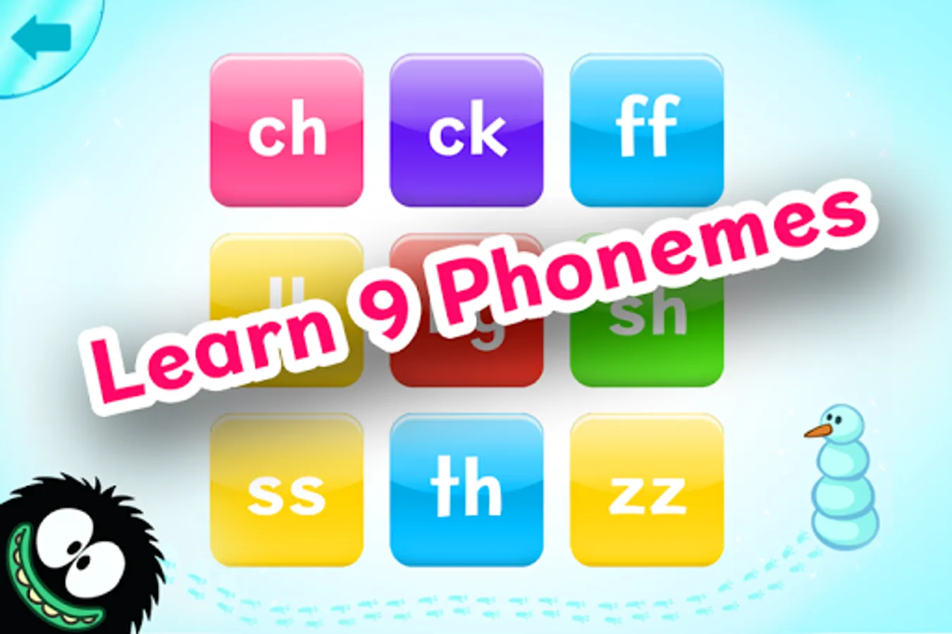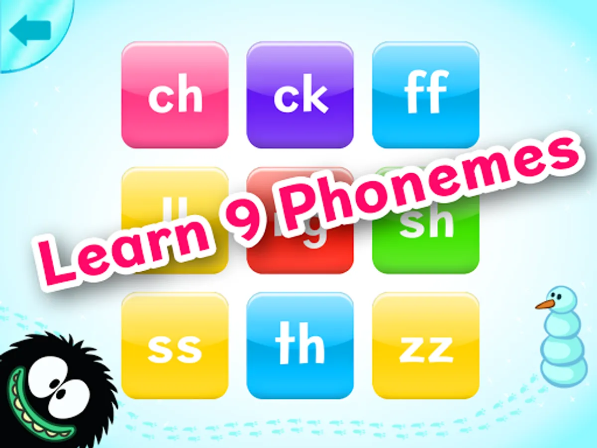 - Learn 9 phonemes (sounds): sh, ch, th, ck, ff, ll, ss, zz, ng.