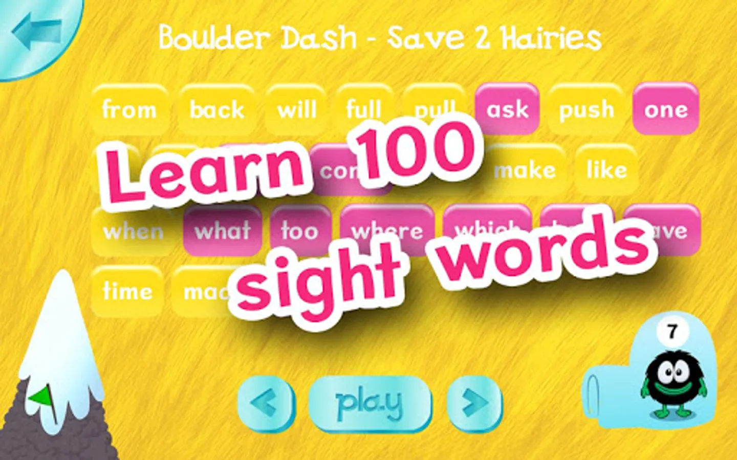 • Each time you spell a word you’ll collect 3 Hairies.