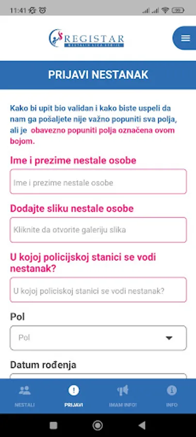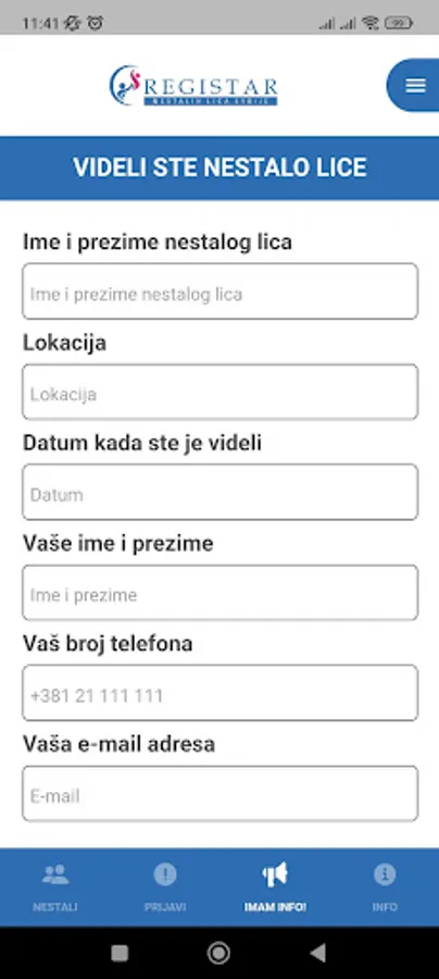 Prijava lica je laka, obavezuje korisnika da ostavi osnovne podatke o nestaloj osobi, fotografiju kao i dokaz o prijavi policijskoj stanici.