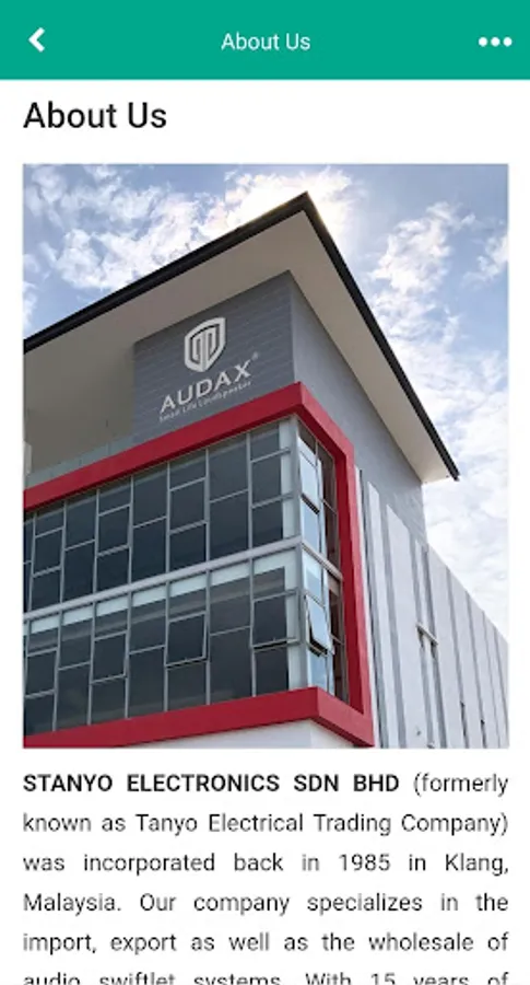 STANYO ELECTRONICS SDN BHD (formerly known as Tanyo Electrical Trading Company) (App name known as NestAmp) was incorporated back in 1985 in Klang, Malaysia. Our company specializes in the import, export as well as the wholesale of audio swiftlet systems. With 15 years of experience under our belt in this industry, we are proud to say that Stanyo has become well-known in Southeast Asia for our own brands, which include Nestamp, Audax and Swallow. Stanyo Electronics has continuously created and innovated new products throughout the years, in order to enhance our customer satisfaction and experience. Currently, we are privileged to supply more than 1500 satisfied clients across the Southeast Asia region with our unique products.