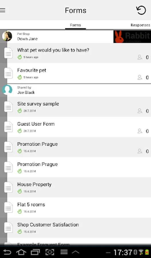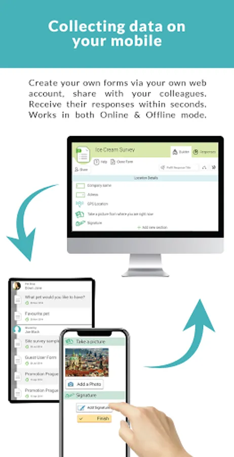 Mobile Forms can be collected by as many people that you have shared your survey form with and this can be performed either online or offline.