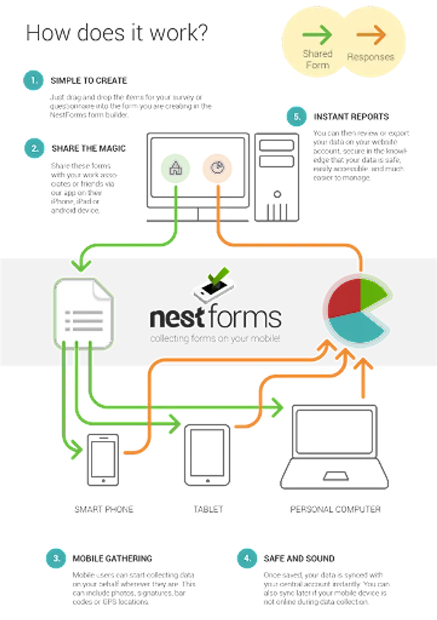 Nest Forms is a web and app-based form builder that allows you to track, create and manage paperless mobile forms, surveys, audits and simple polls under your own dedicated account. You can access your forms from your web account, online or native Android and iPhone app.