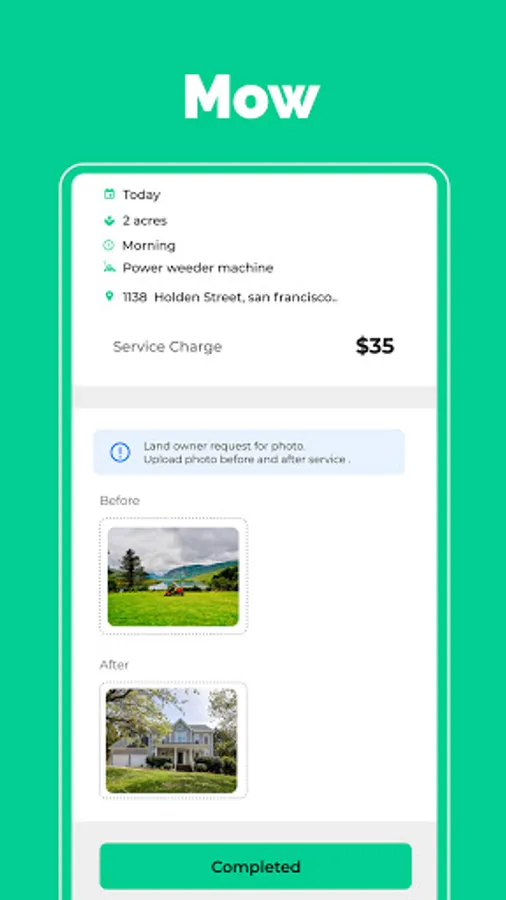 Easy way to acquire new or additional customers on a regular basis. Work-based on the provider's schedule accepts requests at their convenience. Easy way to identify on-demand or non-regular customers. Real-time payments. The platform allows anyone to become a provider like lawn mowing professionals, local businesses, freelancers, students, and neighbors. Providers can onboard their crew members to the platform to serve several customers. No contracts, contactless, quote free, and pre-visits free. Plenty of customers. No need to even own a mower, some customers may provide their own.