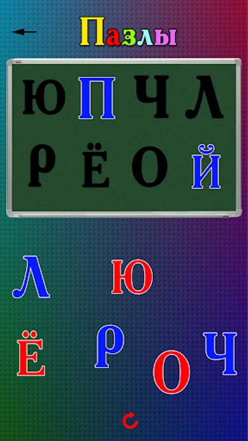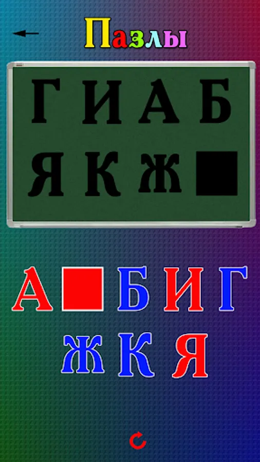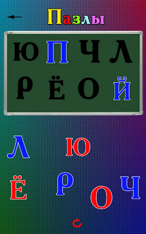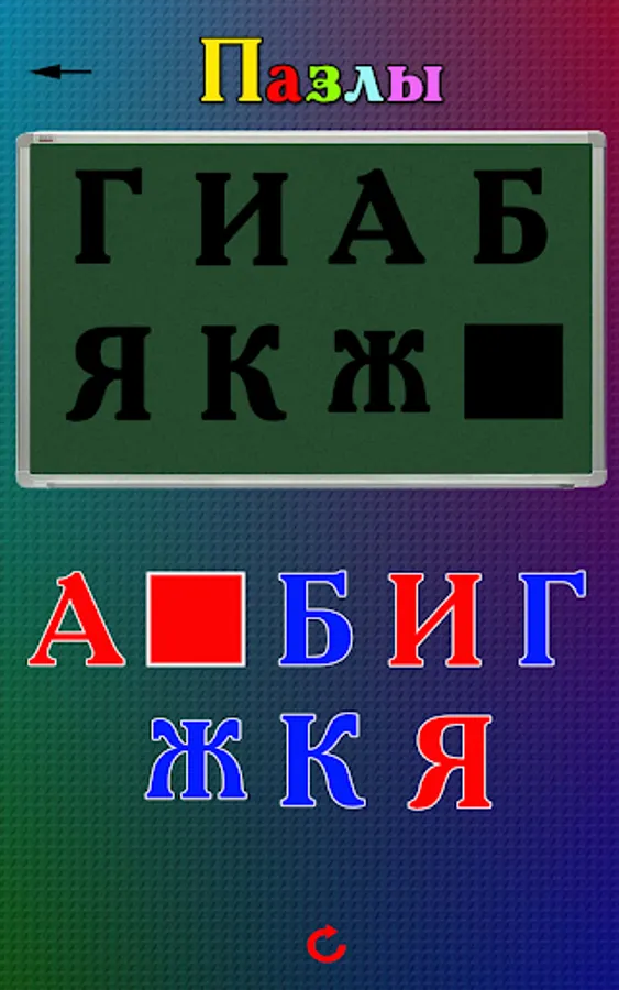 2. Puzzles - you need to put the letters in their places. This game develops the child's logic by forcing them to find similar letters and place them in the cells;