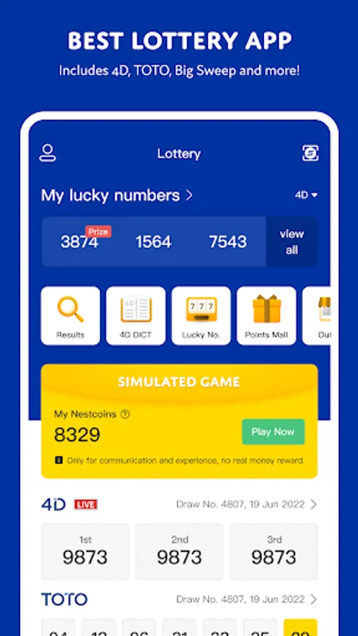 Check past and present lottery results for 4D, TOTO and Big Sweep! It’s the most comprehensive app for it!