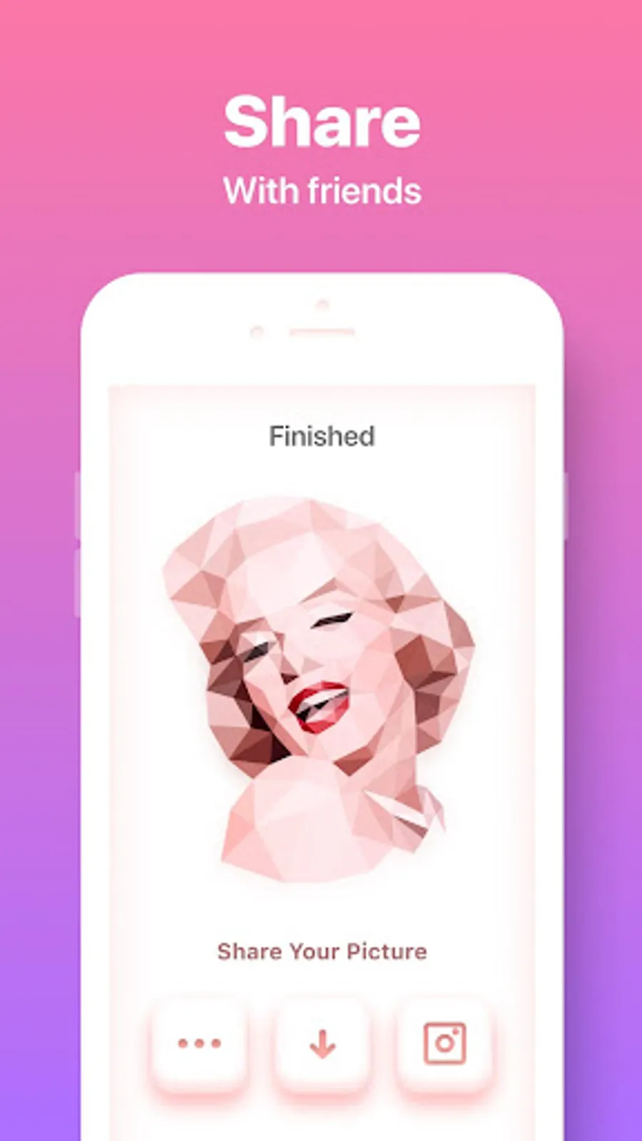 - Replenish your collection of collected puzzles and don’t forget to share your success in Low Poly art game with your friends in social networks!