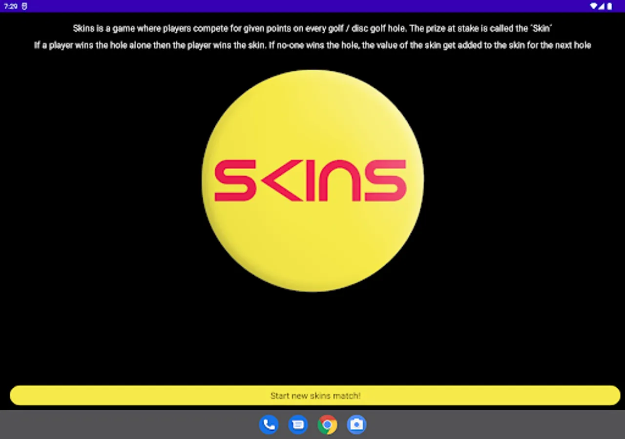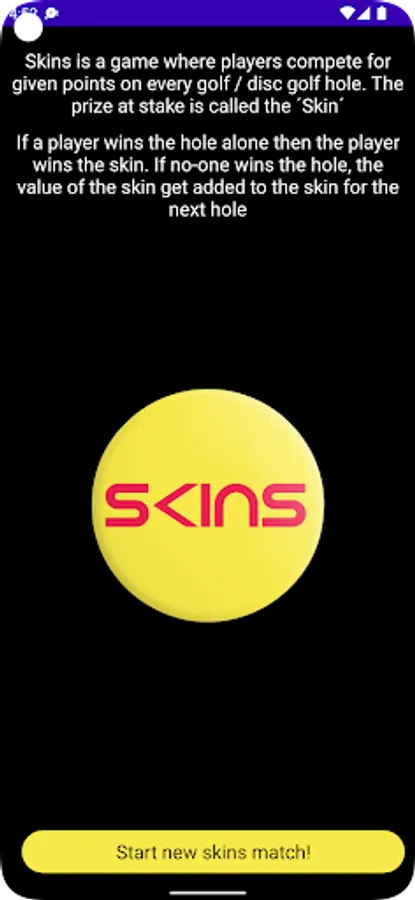 Skins is a game in golf / disc golf where players compete for a prize on every hole. The prize at stake is called the ‘skin’.