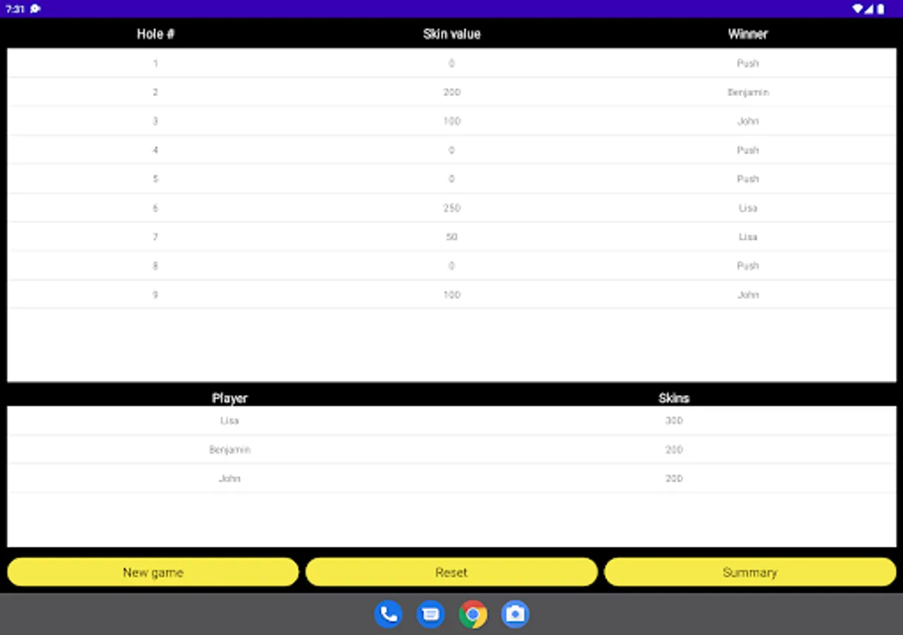 If a player wins the hole alone then he wins the skin. If no-one wins the hole alone, the value of the skin gets added to the skin for the next hole.