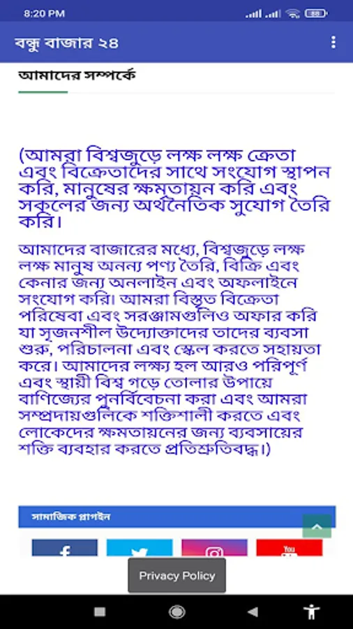 (আমরা বিশ্বজুড়ে লক্ষ লক্ষ ক্রেতা এবং বিক্রেতাদের সাথে সংযোগ স্থাপন করি, মানুষের ক্ষমতায়ন করি এবং সকলের জন্য অর্থনৈতিক সুযোগ তৈরি করি।