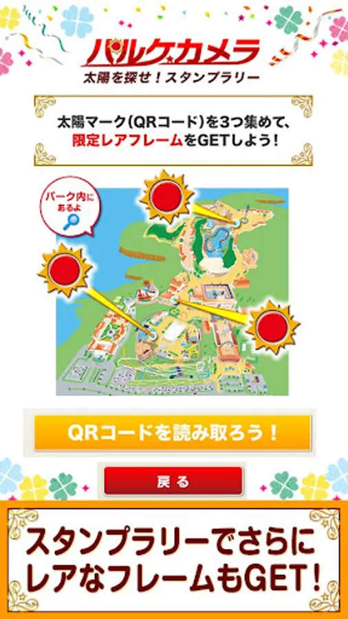 Taken with QR code reading button if you find the sun mark (QR code) in the Park!