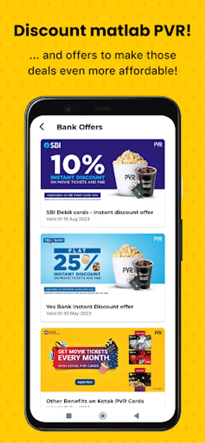• PVR Privilege –. Get set to be rewarded on every transaction you make at PVR Cinemas or on our website. You earn 5 PVR Privilege Points for every INR 100 you spend on tickets & food & beverage items. Free Large Popcorn (Salted) on your first transaction post enrolment. The goodness doesn't end here; after earning 50 points, you automatically receive a voucher for the amount. Your vouchers are valid on subsequent transactions at our cinemas, as well as on our website and mobile app. That's not all! With PVR Privilege membership, you get birthday bonuses, invites to exclusive events & premieres, and more, to make your movie-going experience hugely rewarding.