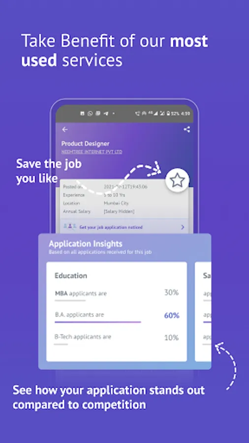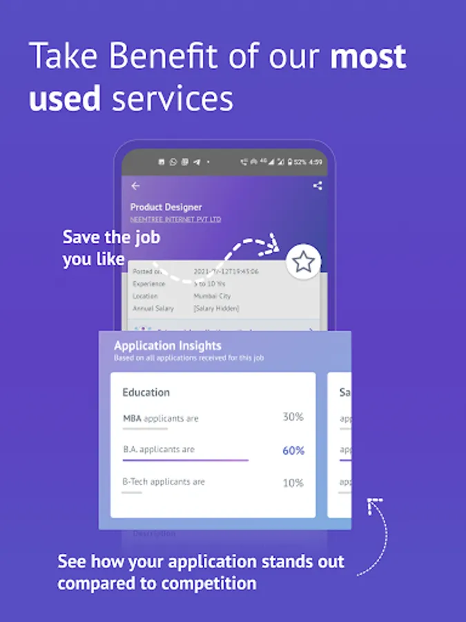 Shine.com is a Job Search App with more than 50 Lakhs registered app users benefiting from the Job finder services.