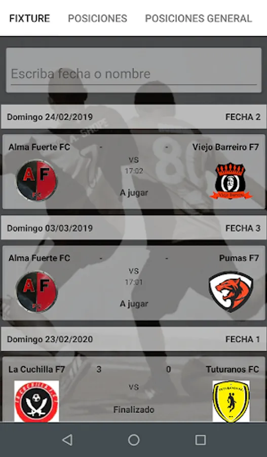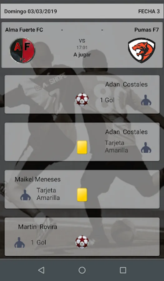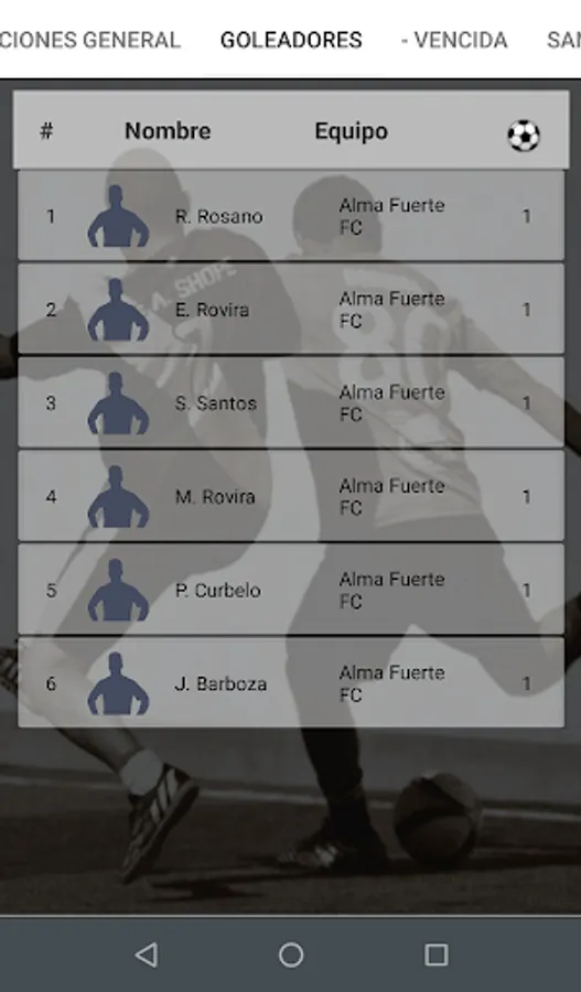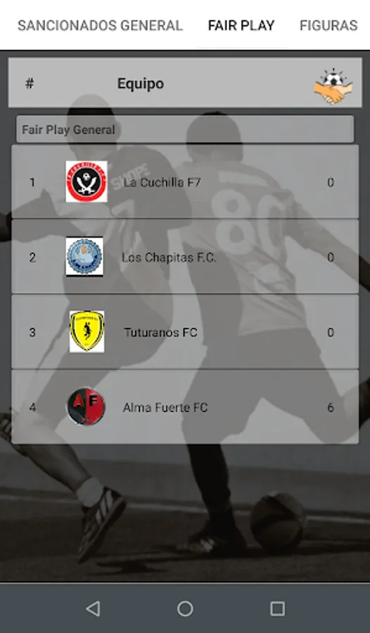 In it you can instantly see the progress of the tournament in which you are participating! You can see updated photos and news, different tables such as positions, fixture, scorers, less defeated fence, fairplay, sanctions, and much more! Request it to the organizers of your tournament!