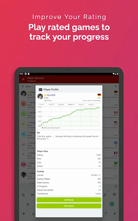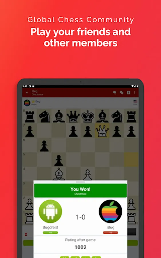 Play online correspondence style "daily chess" on the RedHotPawn chess platform right from your phone. Play your friends or challenge the global chess community.
