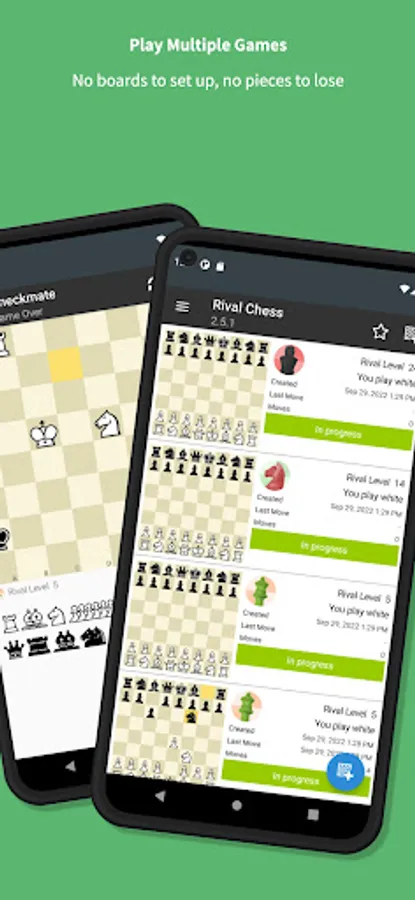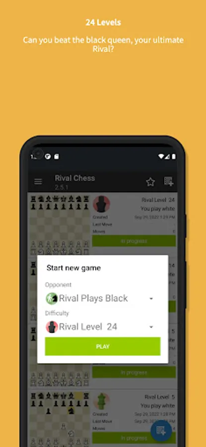 - Play chess against our popular Rival Chess engine, or play against a friend in hot-seat mode.