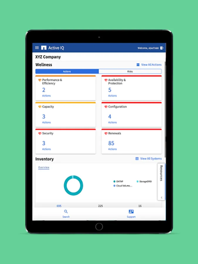 NetApp Active IQ is a digital advisor that simplifies the proactive care and optimization of NetApp storage. Fuelled by telemetry data from our highly diverse installed base, it uses advanced AI and ML techniques to uncover opportunities to reduce risk and improve the performance and efficiency of your storage environment. It then provides the prescriptive guidance and actions to make it happen. This “actionable intelligence” simplifies storage administration and leads to higher availability, improved security, and higher-performing storage.