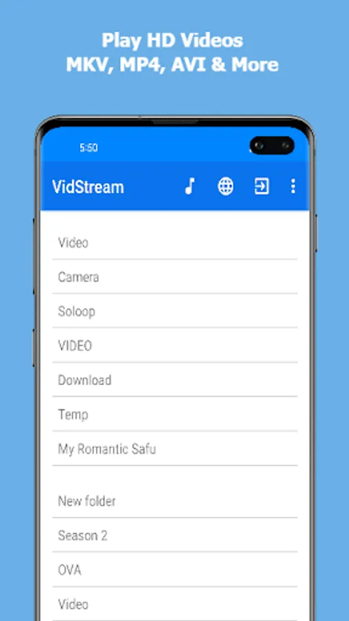 Multiple Format Support: VidStream supports a wide range of video formats, including MP4, MKV, AVI, and more. No need to worry about compatibility issues - play your videos hassle-free.
