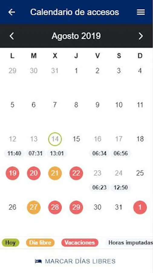 Application with which the professionals of Verne Group will be able to make their day registration and their material orders in case they have authorization for it. The app has a registration calendar, where, graphically and visually, it shows which days you have registered access to work, which you have requested as days off and your effective time.