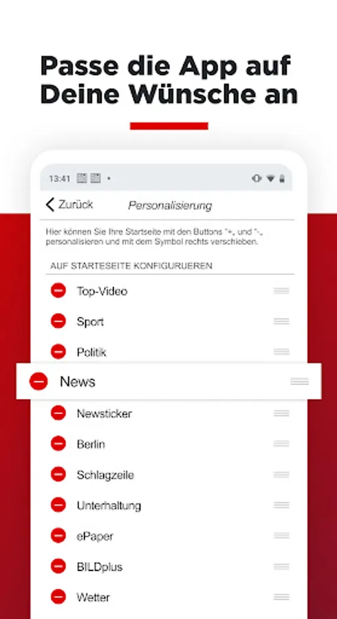 - Personalized messages: You alone decide which topics interest you. Personalize your BILD News App start page and get everything that interests you immediately at first glance!