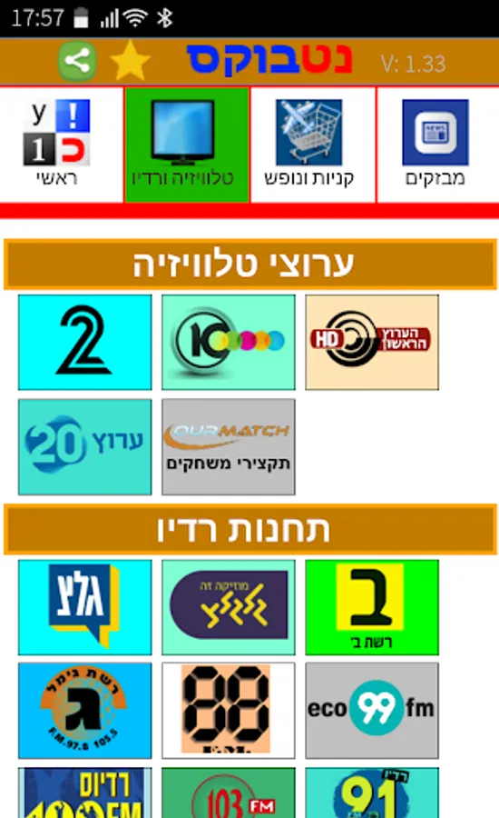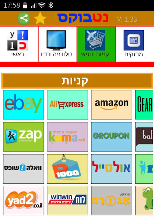 News / and Inti, and voila, Rotter Israel today, Ma'ariv, NRG, The Marker, Mako, Kalkalist, Globes, Nana 10, Army Radio, Reshet Bet radio non-stop sports 5, One, YouTube, Weather, Isaiah , Zap, delivery, temporary trains and buses, hand 2, Groupon, coupons, channel 2, channel 10 Series, eBay, Aliaksfrs, Amazon sites boards, Madeleine and real estate, minute 90, trivago, Booking, Hoels, Expedia, Smartair, UP, easyJet , RYANAIR.