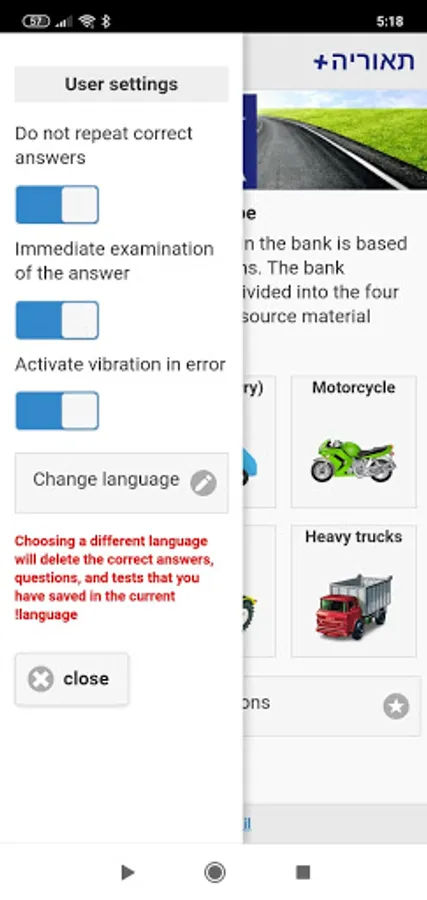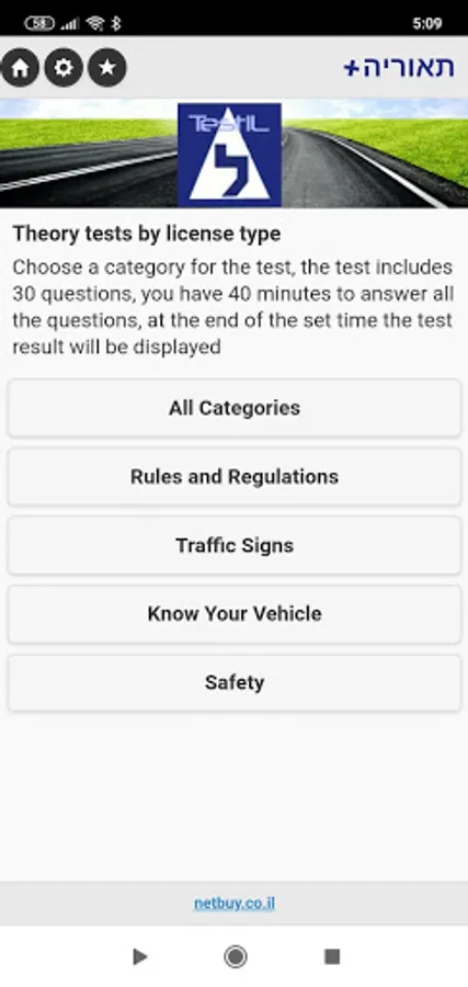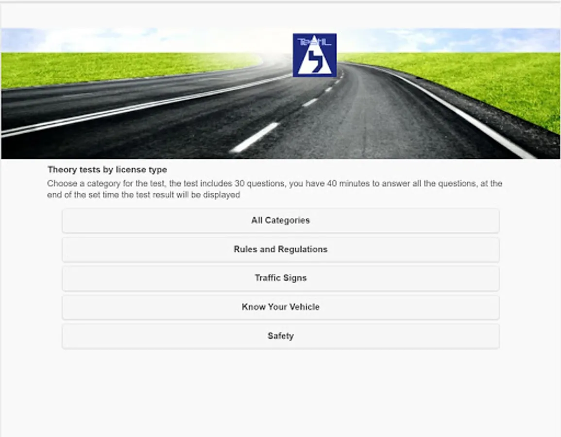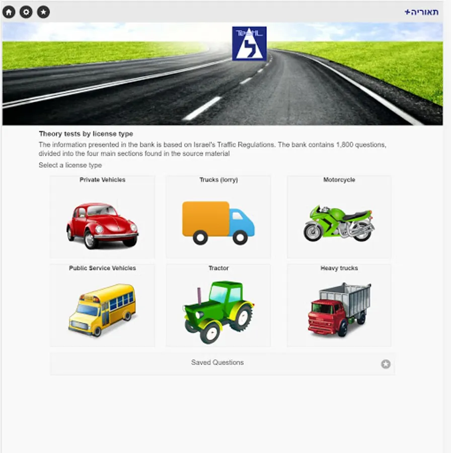 The app based on the Israel's traffic regulations and contains 1,800 questions in English divided into the four main sections similar to the source material.