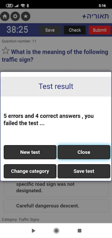 6. You can start a new test, go back to select a category, save a test and see the result during the test inside the exam page