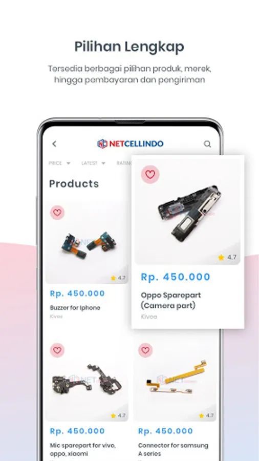 Netcellindo adalah perusahaan yang bergerak di bidang retail sparepart handphone. Kami menawarkan berbagai macam jenis sparepart handphone seperti LCD , Touch Screen, Baterai, dan banyak lagi. Hal inilah yang membuat kami menjadi tujuan utama Sparepart online di Indonesia. Lebih dari 3.000 produk online yang kita tawarkan setiap harinya, kami sangat ambisius dan akan terus berkembang. Kabar baiknya adalah, kami memberikan Anda kemudahan untuk mencari kebutuhan sparepart handphone Anda.