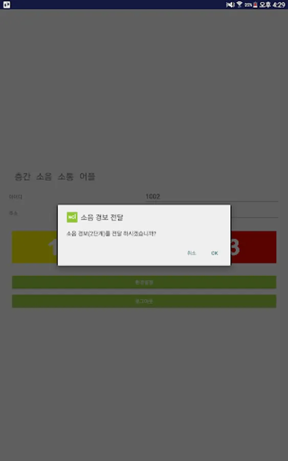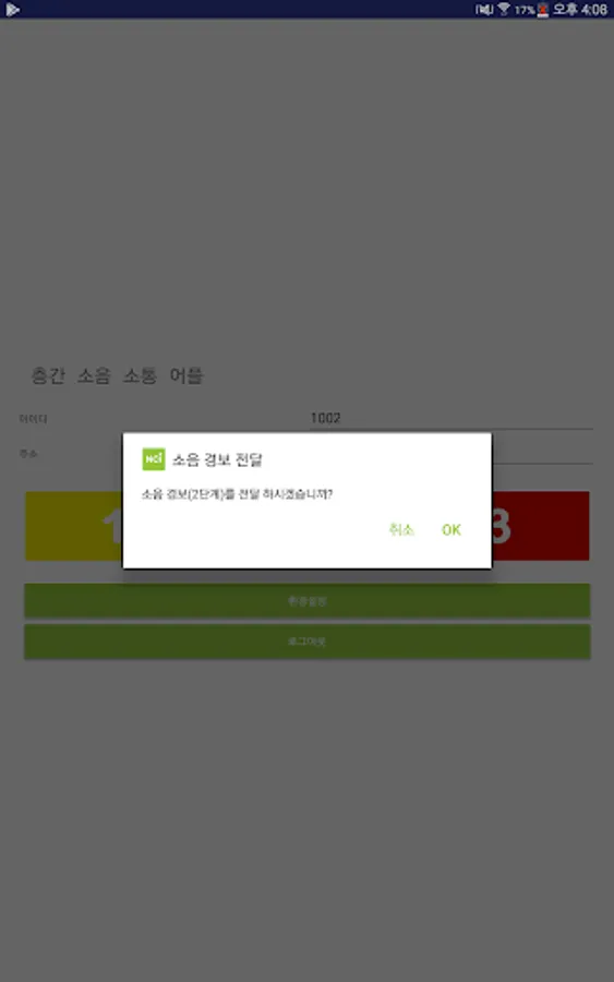 - 피해상황 통보를 통해 층간소음 설정강도를 변경할 수 있습니다.