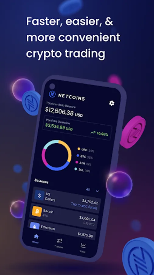 Make instant trades or set up limit orders with a few taps. Whether you’re a beginner or a seasoned investor, you’ll find the Netcoins app an easy way to invest in crypto.