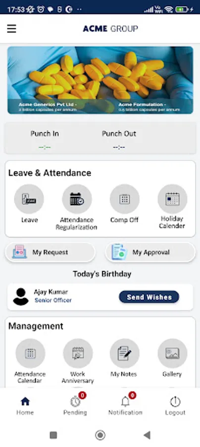 Features of ACME GROUP HRMS App -