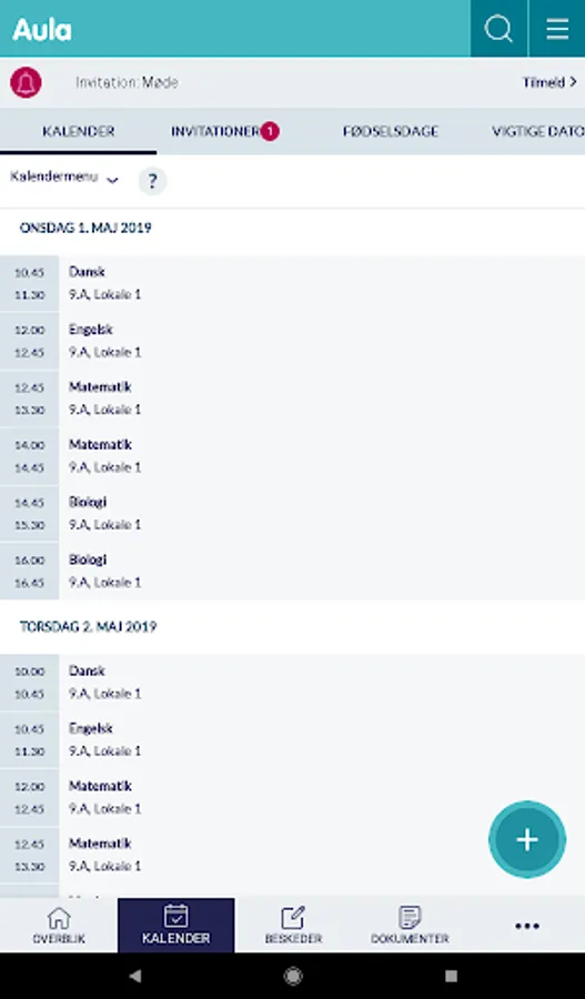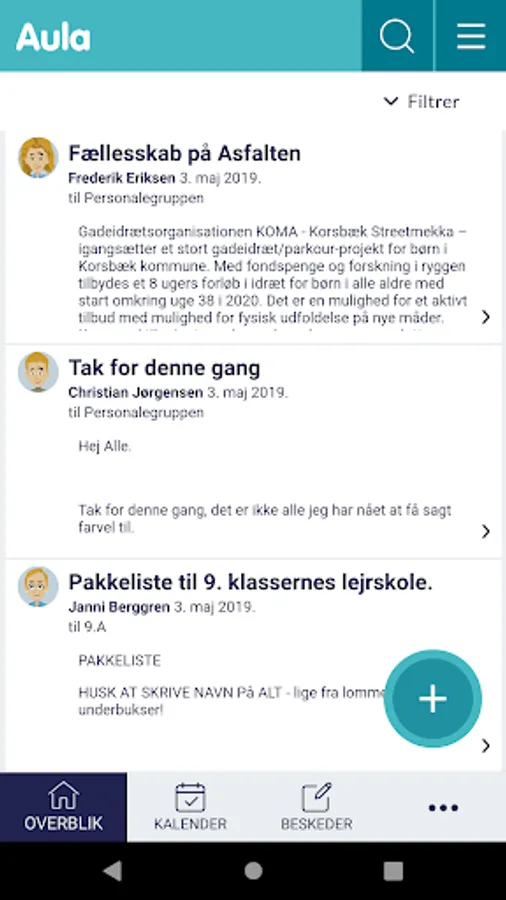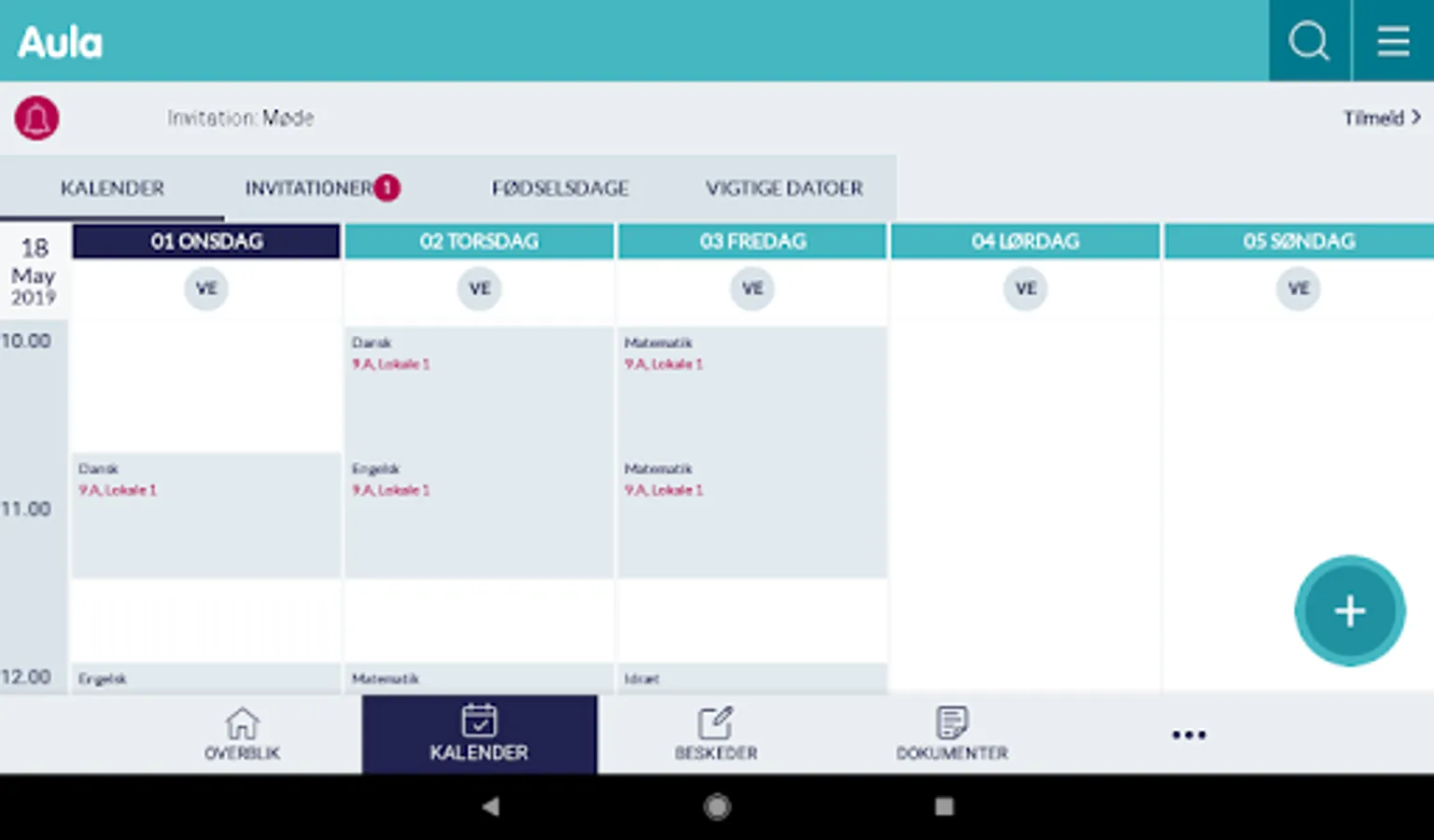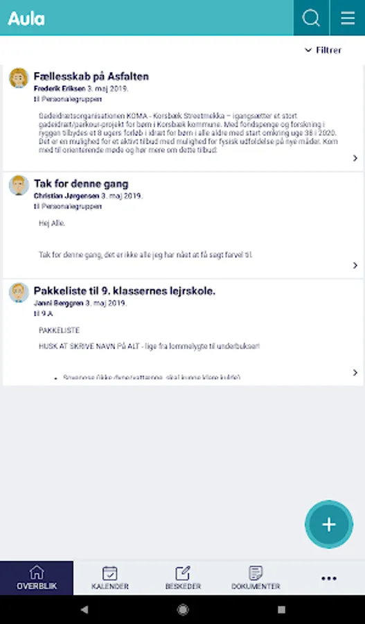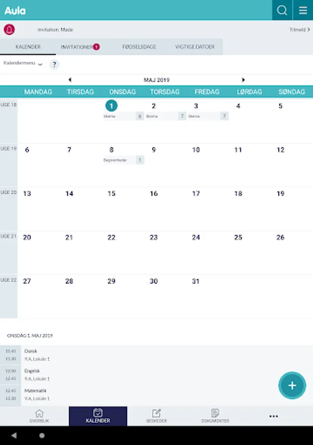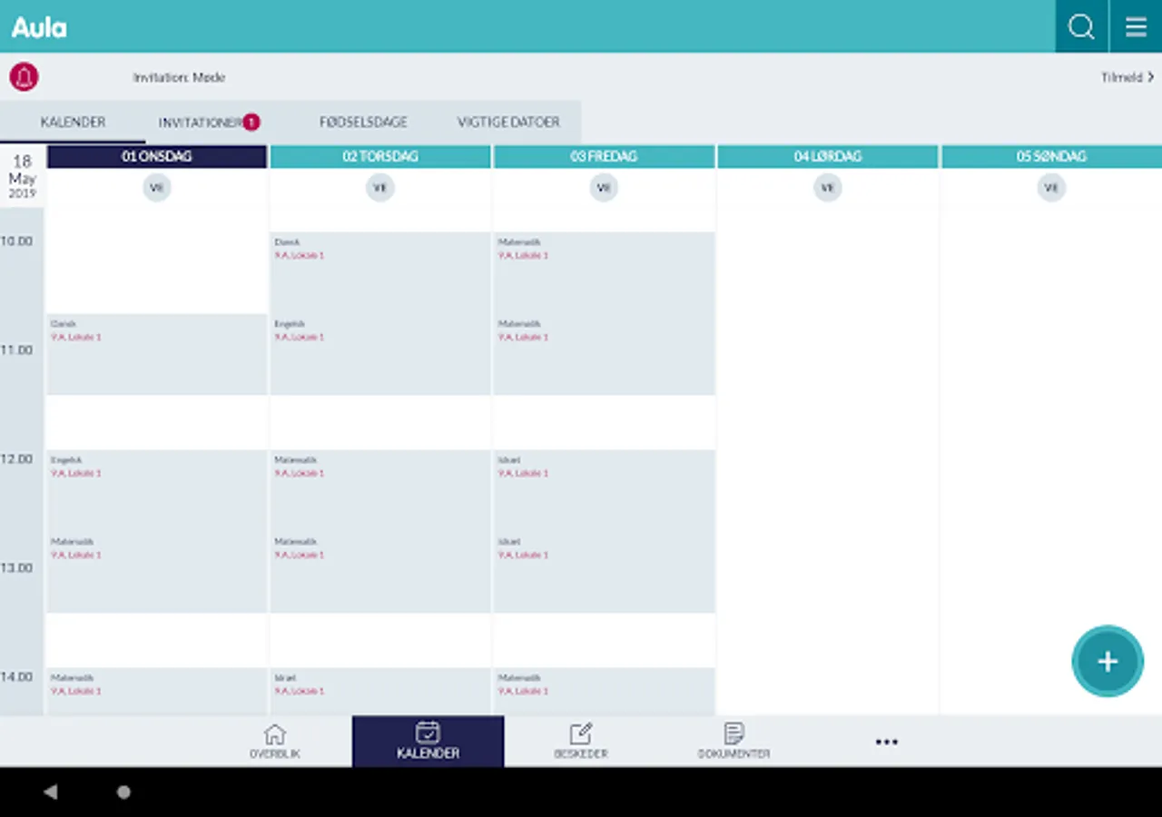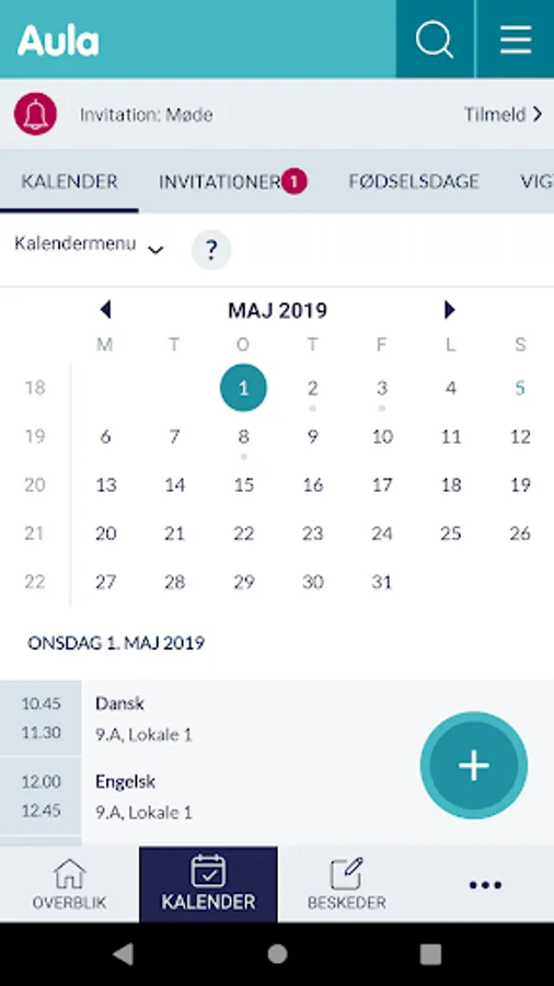 This is Aula's app for employees, where you can quickly and easily get an overview of new in Aula. You have the option of setting up the app to suit your needs exactly. For example, you can get reminders when new messages or calendar invitations arrive.