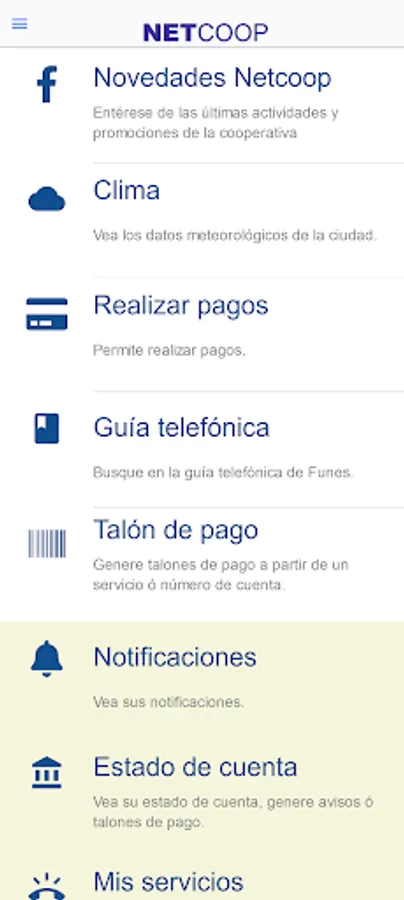 -Consult all your contracted services, with the possibility of acquiring new products and services.