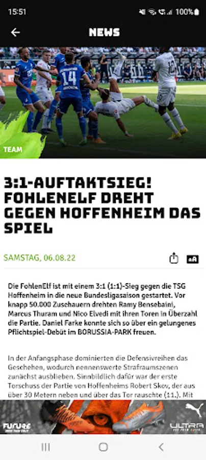 Do you have any questions or suggestions, us scheibt under info@borussia.de. We look forward to receiving your feedback. You can make with your suggestions for improvement that the official app of Borussia Monchengladbach is getting better.