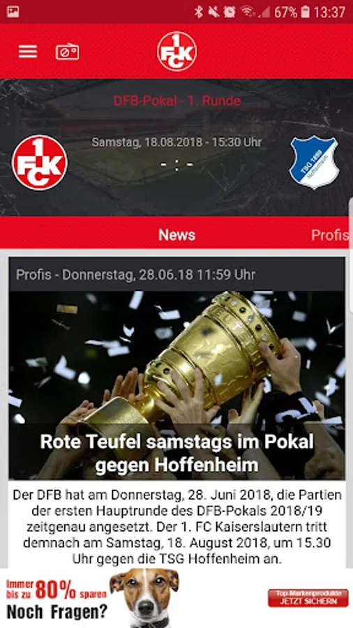 Always have the 1. FC Kaiserslautern in your pocket: That's easy with the official FCK app! Stay up to date, watch hot news be the first and be very close to the Red Devils!