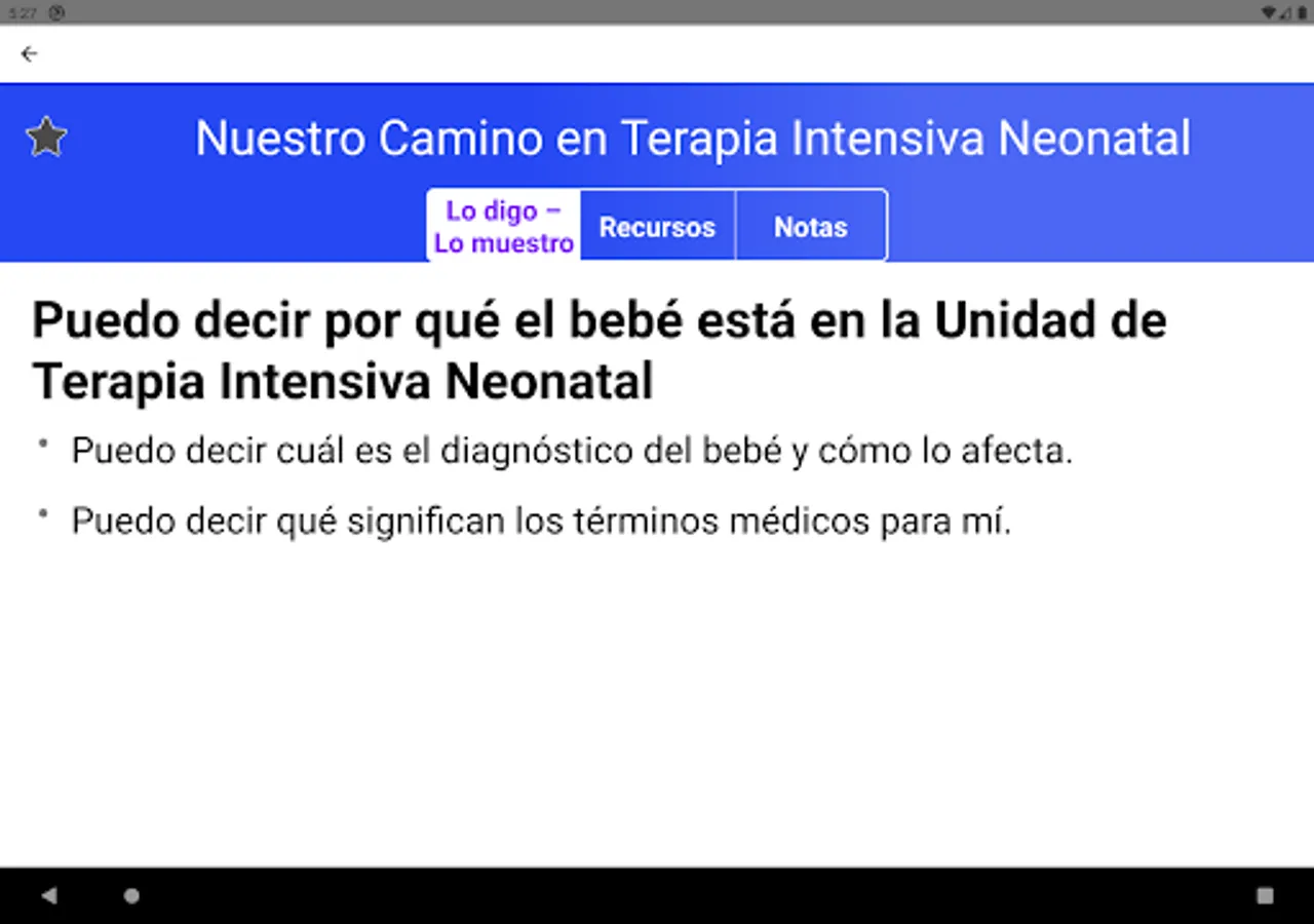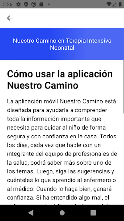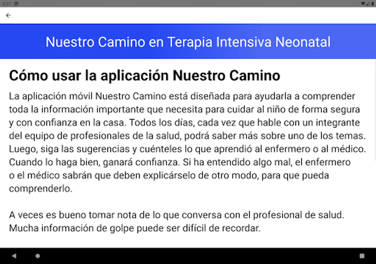 The Emily Center at Phoenix Children’s Hospital presents Our Way in Neonatal Intensive Therapy so that families with babies in intensive care can identify what they need to know before leaving the hospital. Parts of this application could be used in clinic and emergency room consultations.